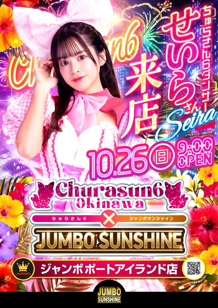 10/26 ジャンボポートアイランド店さんにちゅらさん6からせいらちゃん参戦します!